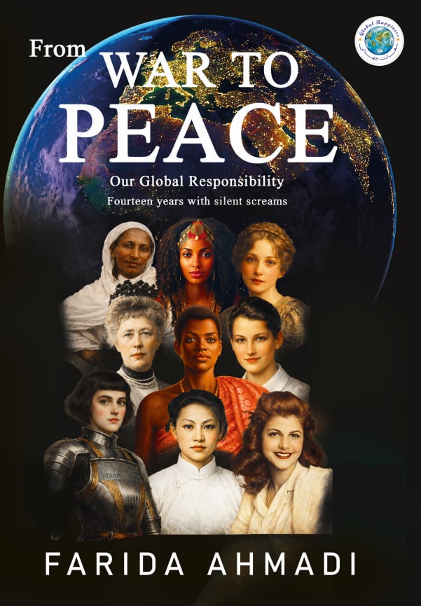 現在、私は『戦争から平和へ: 私たちの世界的責任ー声なき叫びから14年』という本を、さまざまな言語で執筆しています。あなたに私の本の表紙をお送りします。その表紙には、行動を通して世界を変えている、世界各地の女性たちが描かれています。