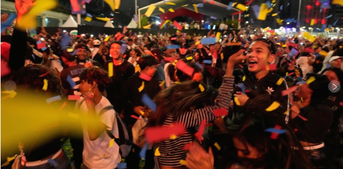 ベネズエラは火曜夜、ワールド・ベースボール・クラシックで初優勝を果たした。8回にリードを許したものの、9回にエウヘニオ・スアレスの勝ち越し二塁打で逆転し、米国を3対2で破った。カラカスの公共広場には、多くの子供たちを含む数千人が集まり、試合を観戦。多くの人が踊り、ベネズエラの国旗を振った。(AP通信、フアン・アラエス、アンドリー・リンコン、ブライアン・アンテケロ撮影)