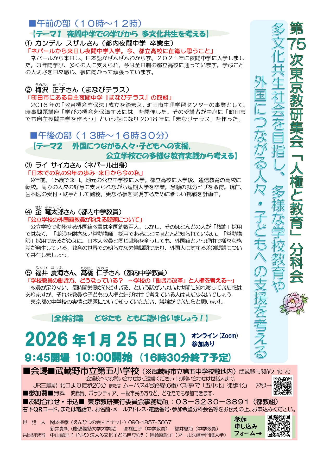 2026年1月25日(日)東京教研「人権と教育」分科会